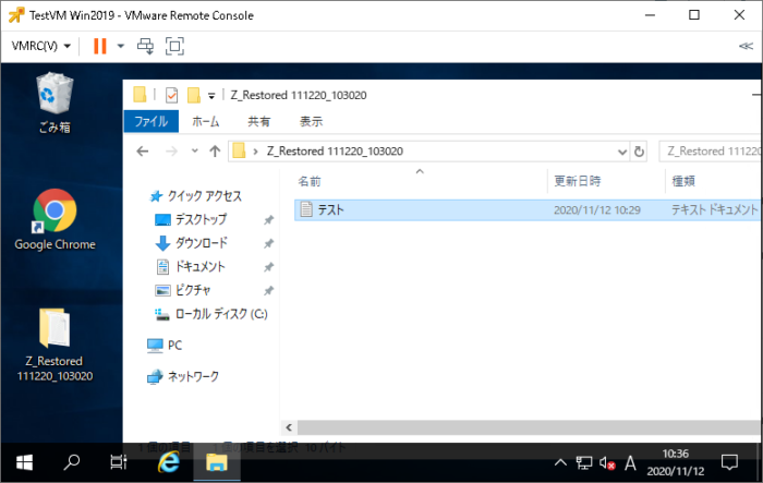 ※上書きではなく、「Z_Restored 月日年_時刻」 ( チェックポイント作成日時) のフォルダにリストアされます。