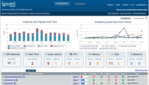 Igniteは最もパフォーマンスにインパクトのある問題に焦点を当てて、ターゲットを絞った豊富な情報を提供します。Oracle, Sybase, DB2同様にSQL Serverを含むデータベース・インスタンスはダッシュボード・ベースで単独のWebブラウザ内にすべてが表示されます。