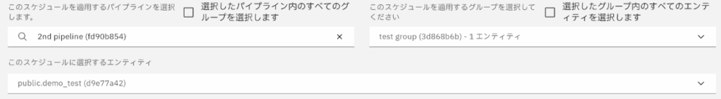 スケジュールは個別のエンティティ(テーブル単位の同期設定)、グループ(同一パイプライン内で作成できるエンティティを複数まとめた設定)、パイプライン(データベース接続の組み合わせ)単位で設定できます。