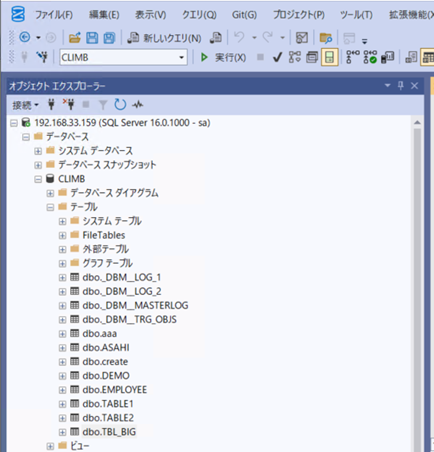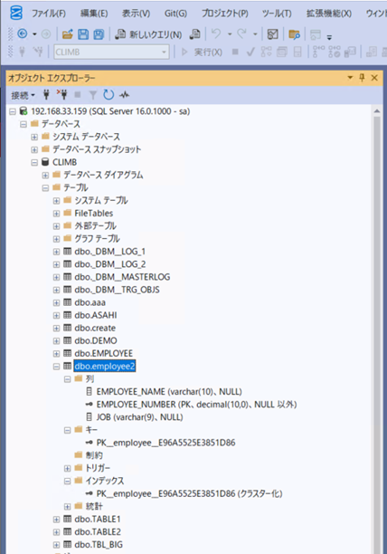 ターゲット側のMicrosoft SQL Serverを確認すると、EMPLOYEE2というテーブルは存在していないことがわかります。