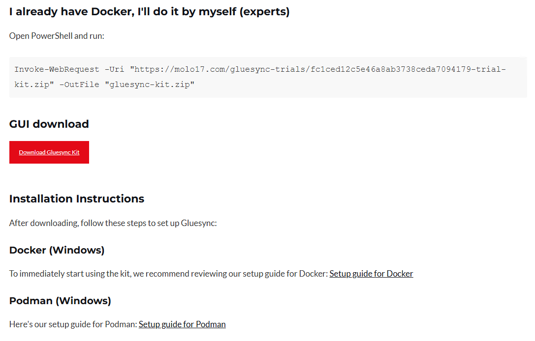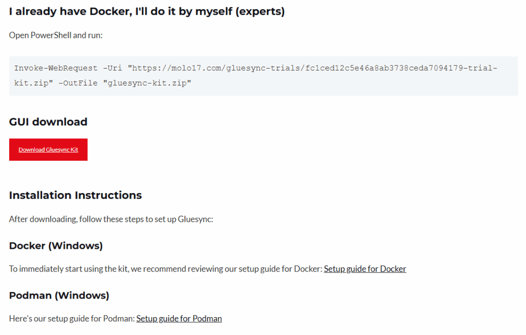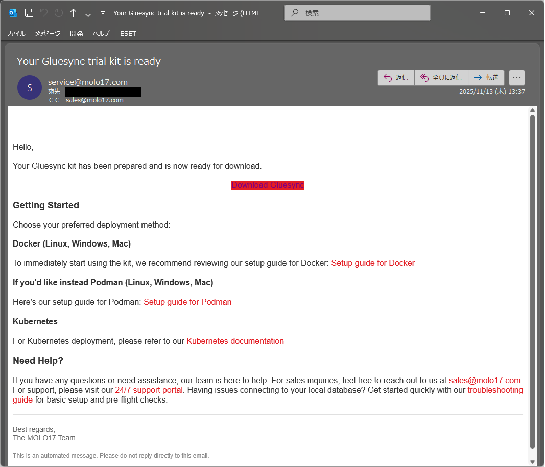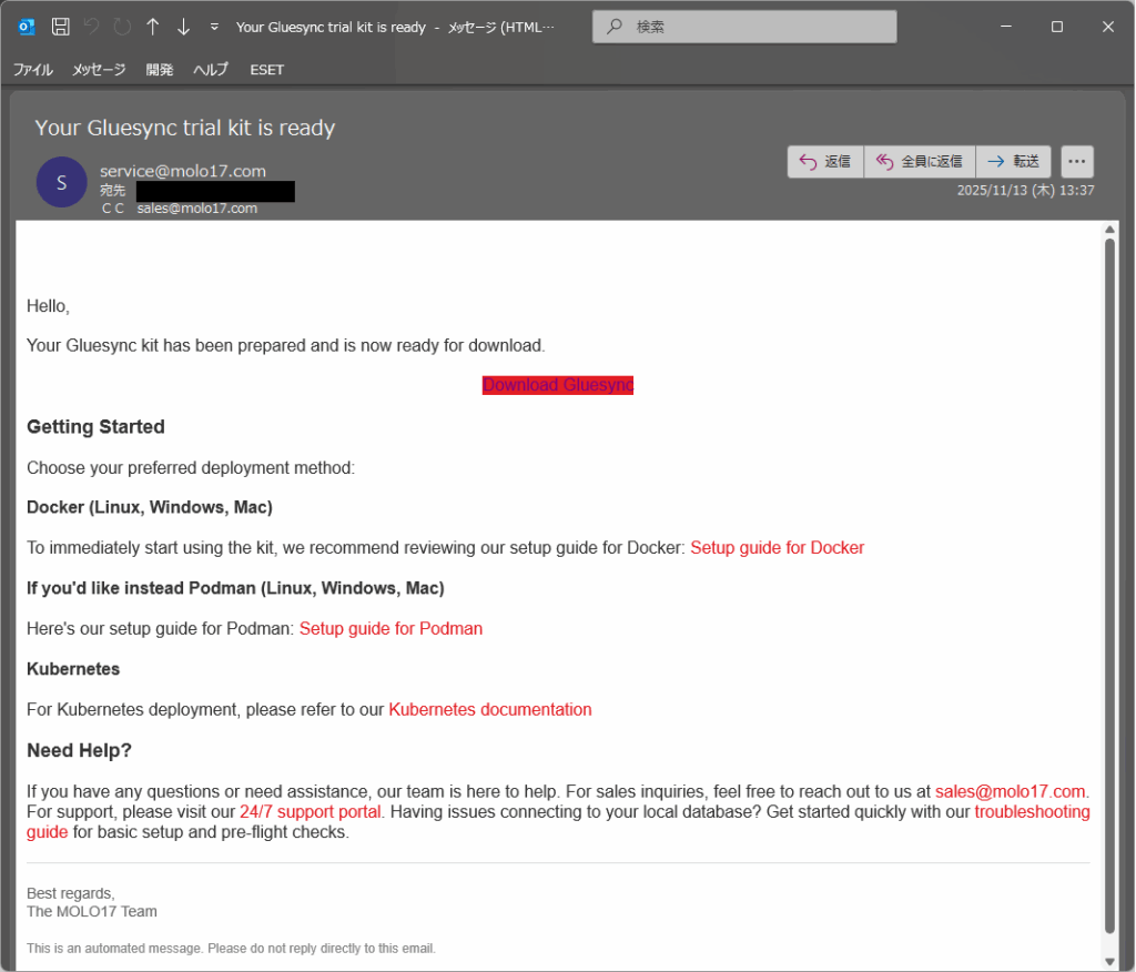 Gluesyncの評価を申請すると下記の様なメールが届きます。Download Gluesyncのリンクを開きます。