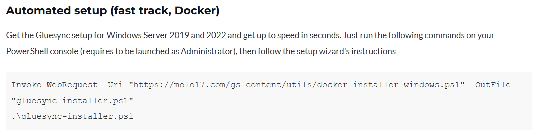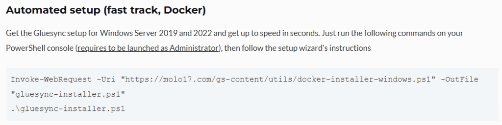 そして、 Windows Server 2019または2022へのインストールであり、Docker等が構成されていない場合、Automated setupの手順に従ってDocker含めインストールが可能です。