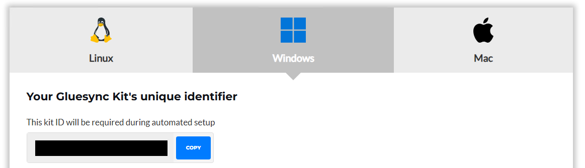 下記ページにて、Windows環境へインストールする場合はWindowsタブを選択します。そして、評価用のキットごとにIDが割り当てられているため、それを控えて起きます(インストール時や他のツール利用時などにも利用します。)。