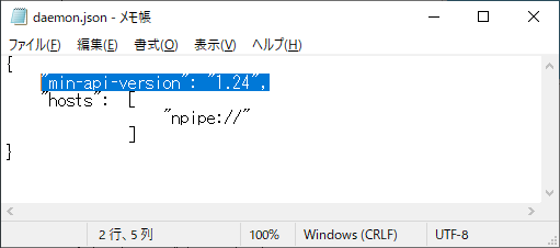 ※利用しているTraefik reverse proxyがDocker 29における最小APIバージョンの引き上げでエラーとなり、Web UIにアクセスできなくなることがあります。この場合、下記URLで紹介されているように、”C:\ProgramData\docker\config\daemon.json”で最小APIバージョンを従来の1.24へ変更し、Docker Engineサービスを再起動します。