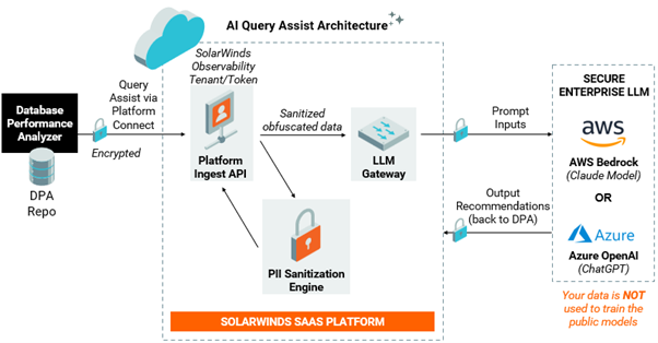 開発元のSolarWindsでは、データ主権は譲れない原則であると認識しています。そのため、AI Query Assistは、データベースの内容がお客様の所有物であり続けることを保証するよう設計されています。