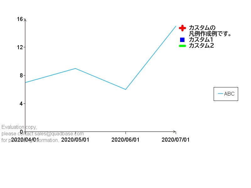 また、テキストだけではなく、シンボルと組み合わせて描画することもできます。下記のようにチャートプロットに依存しないカスタムの凡例を作成することも可能です。