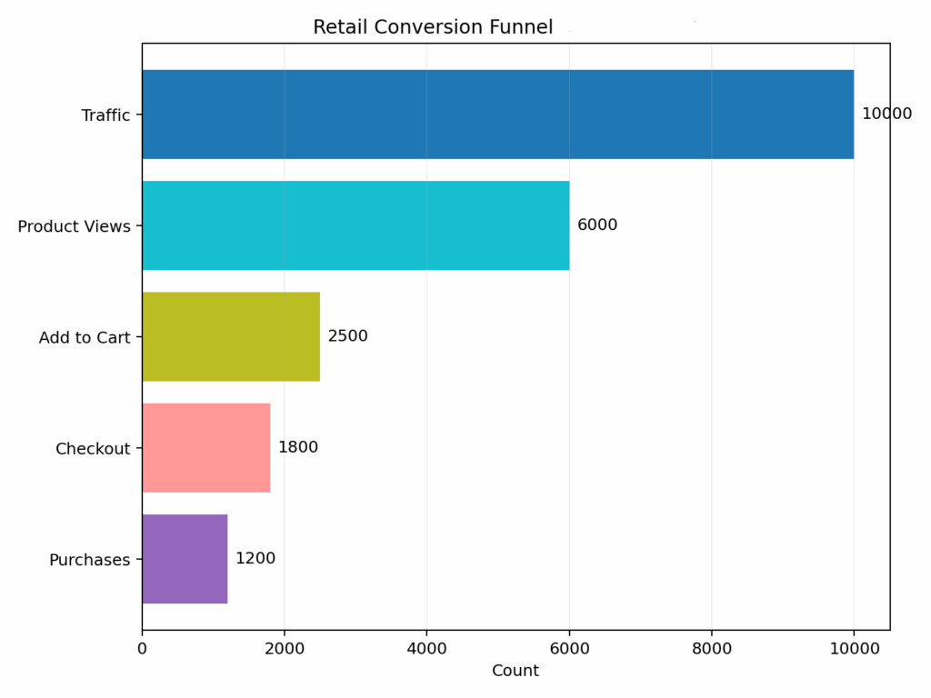 コンバージョン率: 購入を完了した訪問者の割合を測定します。低い率は商品ページや決済フローの問題を示唆する可能性があります。