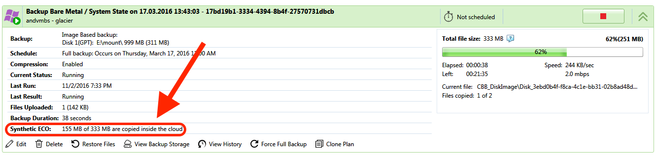 CloudBerry Backupは合成イメージをフルバックアップとして認識します。(技術的な観点から、両者には特別な相違はありません。)