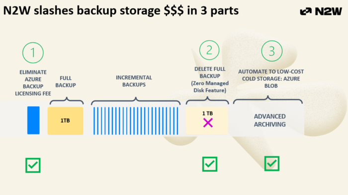 N2WSはAzureバックアップコストを3つの異なる方法で解決し、それぞれが上記の問題の1つに対処します。