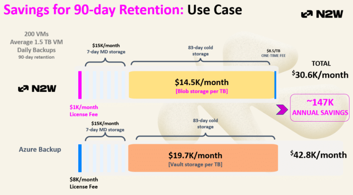 Azureのバックアップ費用は、予測が難しく、財務チームへの説明がさらに困難な形で、静かに急増する傾向があります。N2WSでは、長年にわたりAWSユーザーがバックアップストレージの予算を大幅に削減する支援を行ってきましたが、このノウハウをAzureにも適用しました。