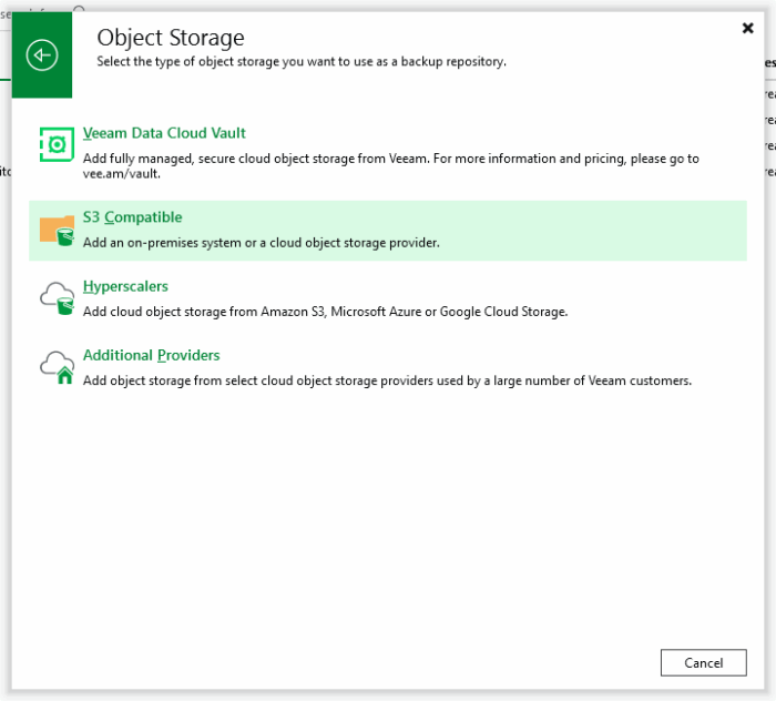以上でExaGrid側の設定は完了です。次に作成されたExaGrid S3インターフェイスをVeeamの保存先として登録します。