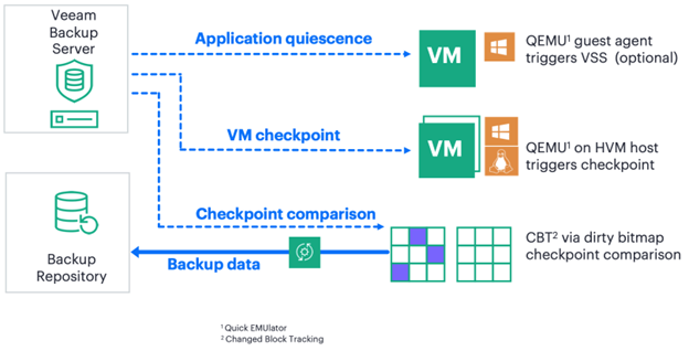 変更ブロック追跡(CBT)は、ソースボリュームの読み取りI/Oを大幅に削減することで、増分デイリーバックアップを高速化します。本プラットフォームは、他のサポート対象ハイパーバイザーで作成されたバックアップからのVMEへの完全なVM復元もサポートし、シームレスなクロスハイパーバイザー復旧を実現します。アプリケーションの一貫性を確保するため、本ソリューションはVSS統合機能を備え、Microsoft Exchange、SQL Server、Active Directory、Oracleに対する精度の高い復元を提供します。NBDモードとHotAddモードによる転送の柔軟性を維持しつつ、データストアサポートはGFS2およびNFSに拡張され、HPE Alletra Storage MPプラグインを介した統合を実現します。