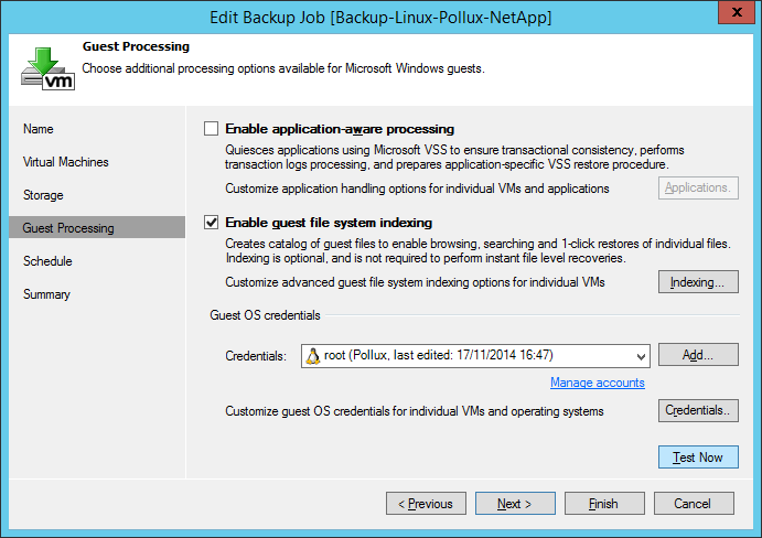 Ver7では唯一の方法は、ゲスト処理/インデックス作成に使用される認証情報が正しければ、ジョブを実行することで知ることでした。