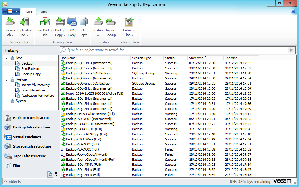 この機能で統計とヒストリー・ビューでのセッション・タイプ(Full, Incremental, Reversed Incremental, Synthetic Full, 等)を確認することができます。