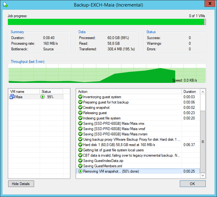VMスナップショットは移動/コミットするたびにプログレス・インディケータでジョブ統計をタスクのパーセンテージ表示で確認することができます。これにより確認のためにハイパーバイザのクライアント・ツールに切り替える必要はなくなりました。