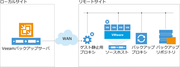 Veeamをインストールしたサーバであり、このサーバがジョブの管理やスケジューリング、ロードバランシングなどを実施し、バックアップ、レプリケーション環境の調整を行います。