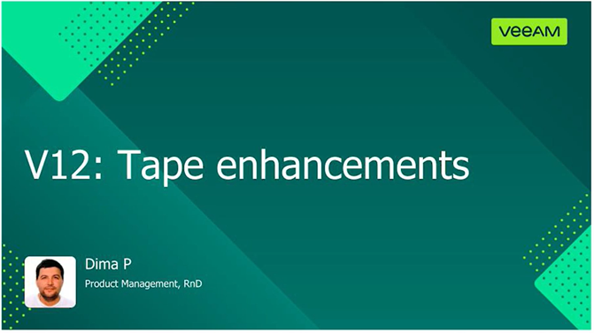 Veeam v12におけるテープバックアップの強化について紹介していました。