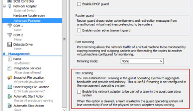 A:Windows Server 2012に組込まれたネイティブなNICチーミング機能はVM仮想ネットワーク・アダプタのデフォルトはデセイブルになっています。しかしHyper-Vホストと-AllowTeaming Onスイッチ(MACスプーフィングを可能にする)を使用してWindows PowerShell経由で簡単にイネイブルにすることができます。