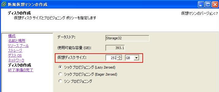 VMware vSphere 4.1 ブロックサイズ1MBの環境時にVMFS3上に仮想マシンを作成する場合