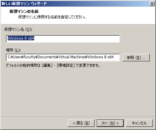 仮想マシンの元ファイル、Windows8のISOを指定します。