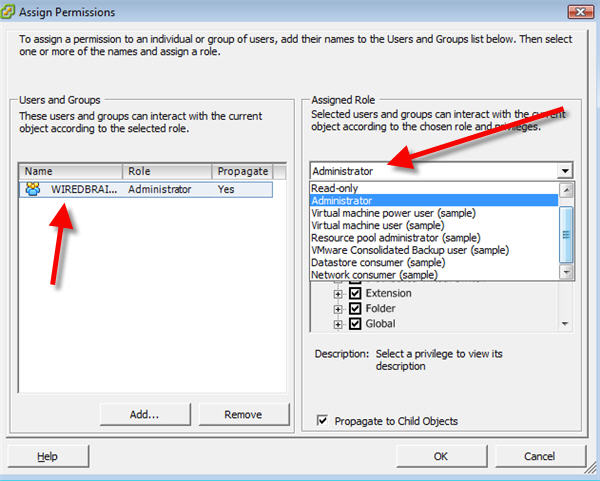もし、ユーザがネットワーク上で唯一のVMware管理者であっても、「vSphere Admins」というWindowsグループからの作成からスタートします。最初はグループ内では作成した人のみですが、後で他の人を追加できます。また例えば「vSphere Desktop VM admins」や 「vSphere Web Server admins」等他のグループを追加することもできます。これらの人はフルアクセスを持ちませんが、分野で分類された特定のVMware仮想マシンを管理することができます。さらにユーザに特定の仮想マシンに対して電源ON・OFFができるように「vSphere Support Techs」と名前を付けたグループをさらに指定と作成をすることができます。