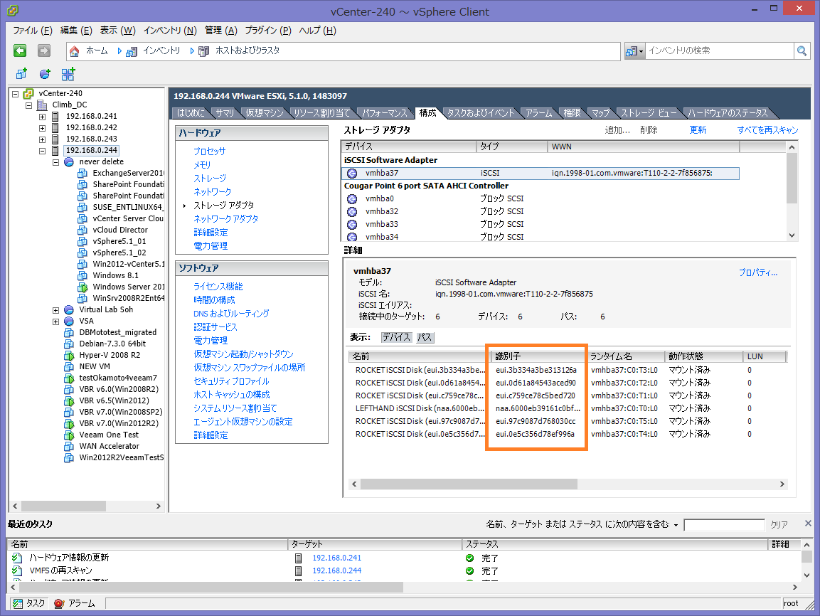 2.HBAを再スキャンし、LUNが見えるようになっていることをストレージアダプタで確認します。