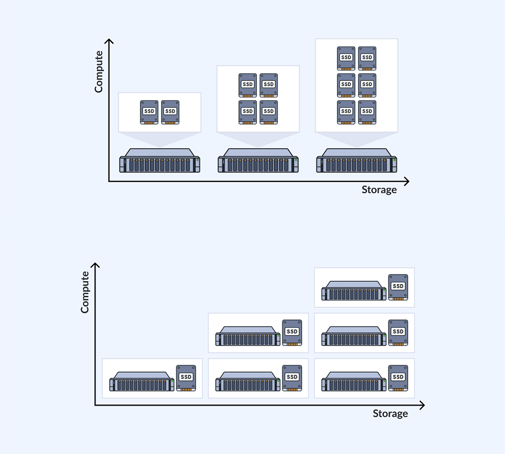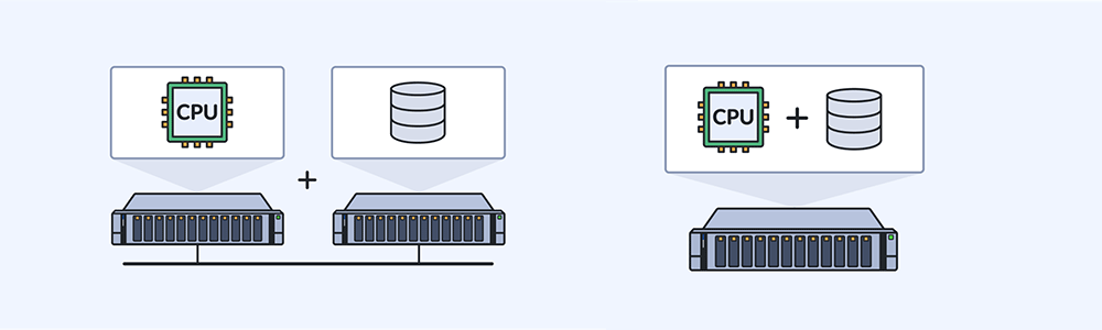 コンピュートとストレージを分離したコンバージドインフラストラクチャ、コンピュートとストレージを一体化したハイパーコンバージドインフラストラクチャ、どちらにも対応しています。これにより、ニーズに合わせた最適な構成を実現可能です。