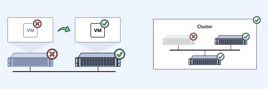 運用コストと設備投資の両方で、大幅なコスト削減を可能にします。物理的な共有ストレージ、インフラ、開発とメンテナンスの負荷を減らし、また通常のハードウェアで動作するため、必要な設備も少なくなります。パフォーマンスと機能