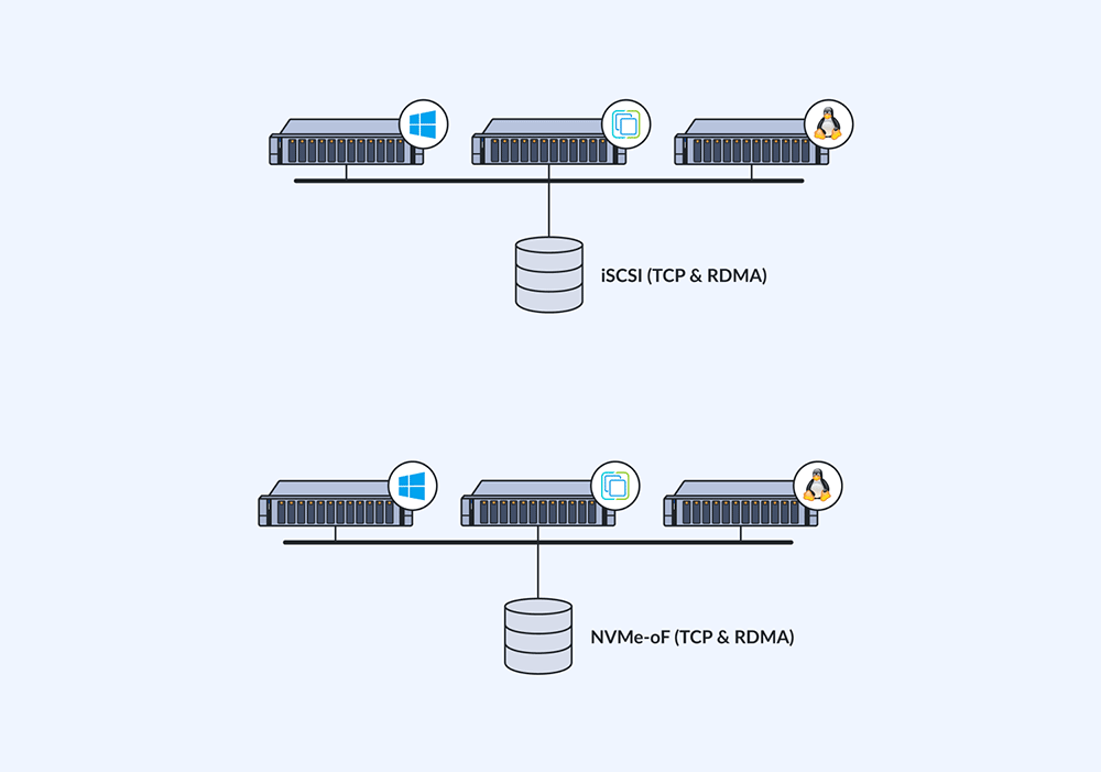 iSCSIまたはNVMe-oFで高可用性HA構成としたLUNを共有ストレージとしてハイパーバイザに提供できます。