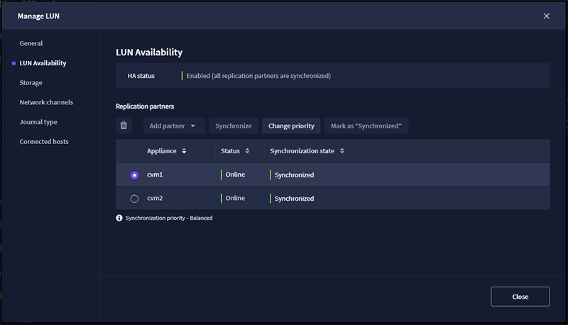 障害からノードが回復した際に、最新のデータを持つノードが引き続きクライアントにサービスを提供し、他のノードが最新のデータと同期していることを保証するインテリジェントな自己修復メカニズムが搭載されています。また、同期ジャーナルを別の永続ストレージに保持することも可能であり、 変更のみを同期し、時間とデータ量を最小限に抑えることが可能です。